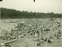 Lincoln Beach was a popular place to enjoy the river. Thousands of bathers would gather, arriving by canoes and small boats from up and down the river. This popular beach was a byproduct of earlier dredging by the Union Sand and Gravel Company, which operated a separating plant from aggregate on the east bend of the river.